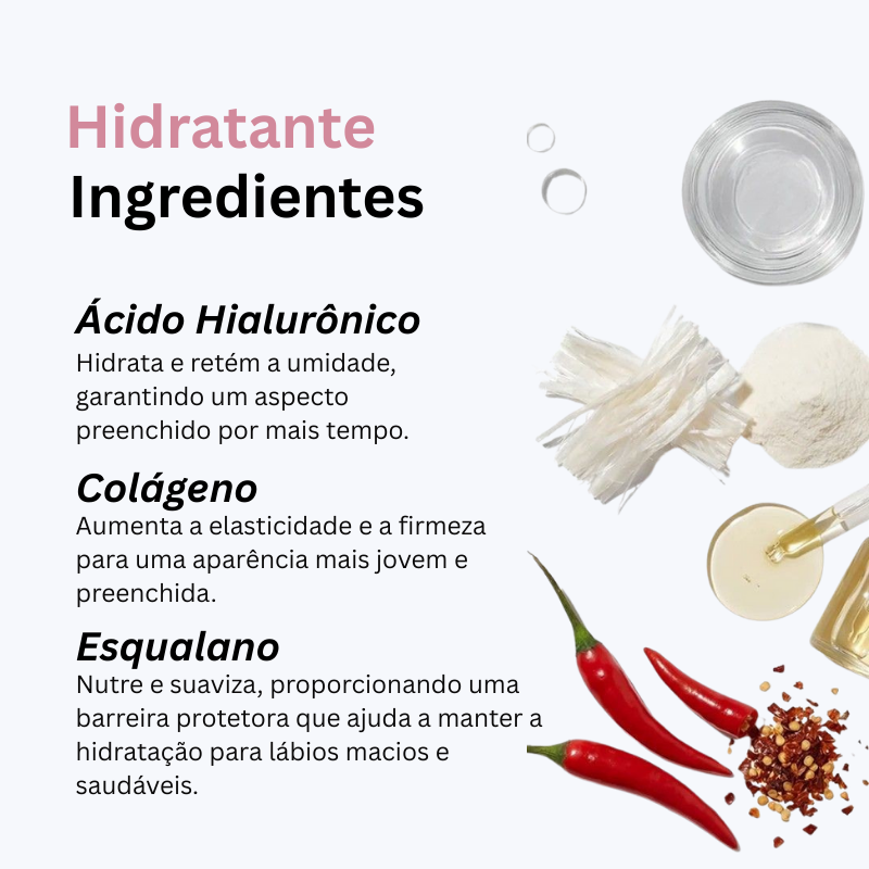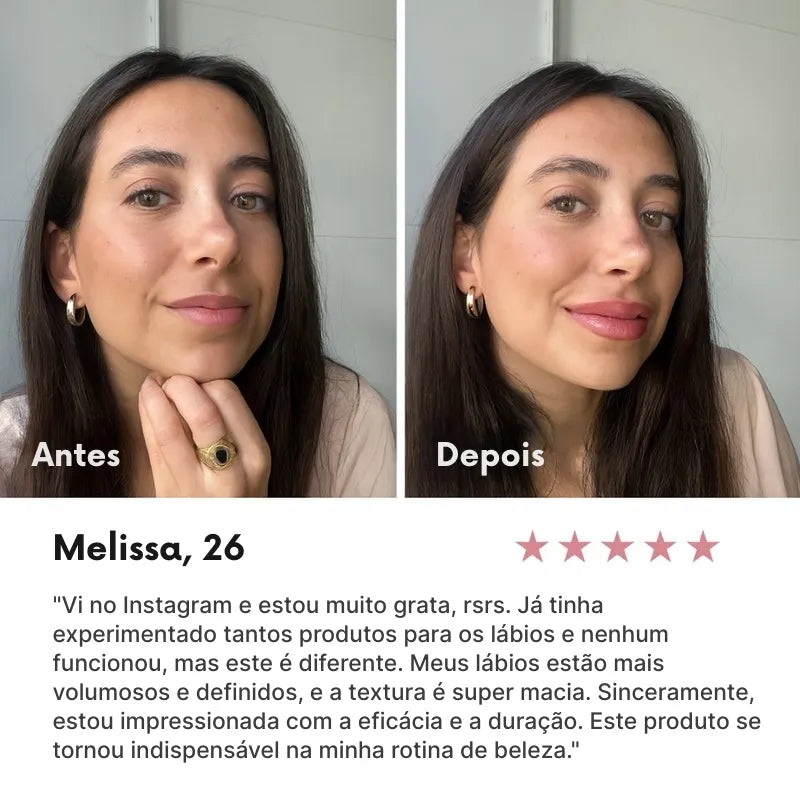 ✅ Hidratação + Volume — nutre enquanto dá volume aos lábios